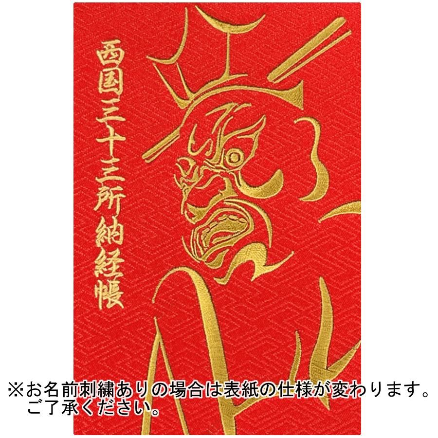 千糸繍院 謹製 西国三十三所 納経帳 閻魔大王 西陣織/日本遺産・西国観音巡礼公式ロゴ刺繍 蛇腹式 全96ページ (赤×白桃)